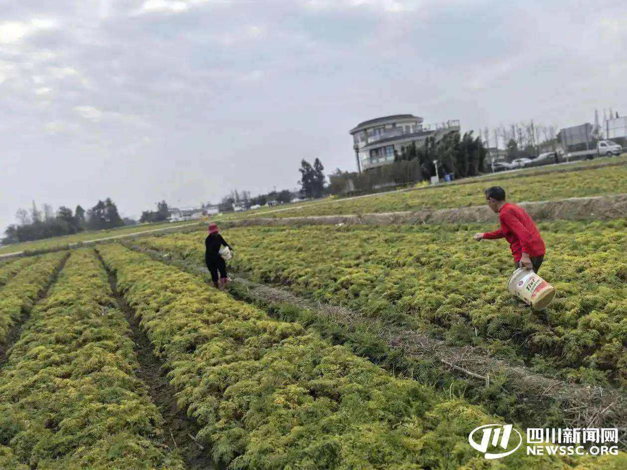 春回大地,年味未散,农事先行。在“彭州川芎”地理标志核心产区的彭州市敖平镇凤泉村,田间地头已率先奏响新春劳作的序曲。村民们带着新年的喜气陆续走上田垄,除草、施肥,3500亩标准化川芎种植基地里,沾满泥土的身影与远处屋顶的福字相映成趣,空气中弥漫着川芎特有的清香——这株道地药材,正成为村民们最实在的“新年红包”。