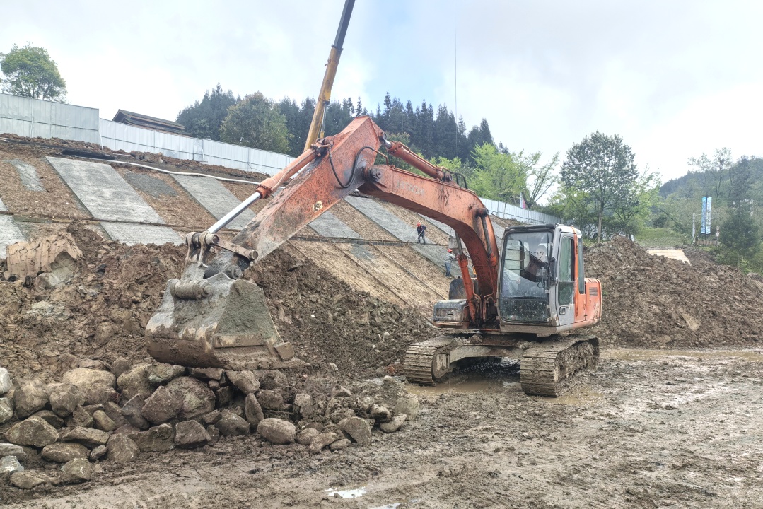 “我现在所处的位置是瓦屋山镇千万工程和美乡村项目—全民体育活动中心室外运动场基础建设现场,这里将新建篮球场、羽毛球、乒乓球场地,我们预计在五六月份完成项目建设。”