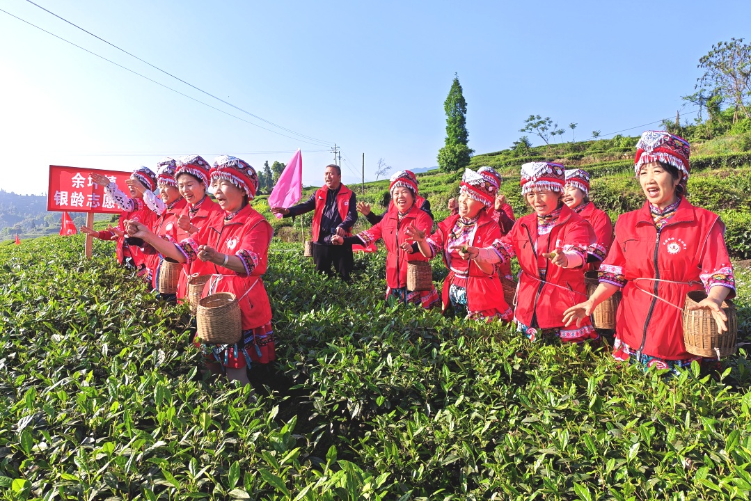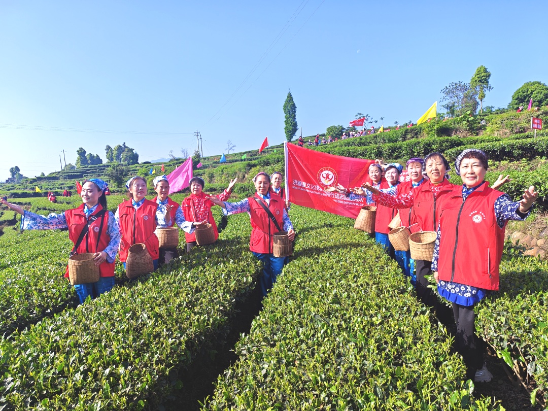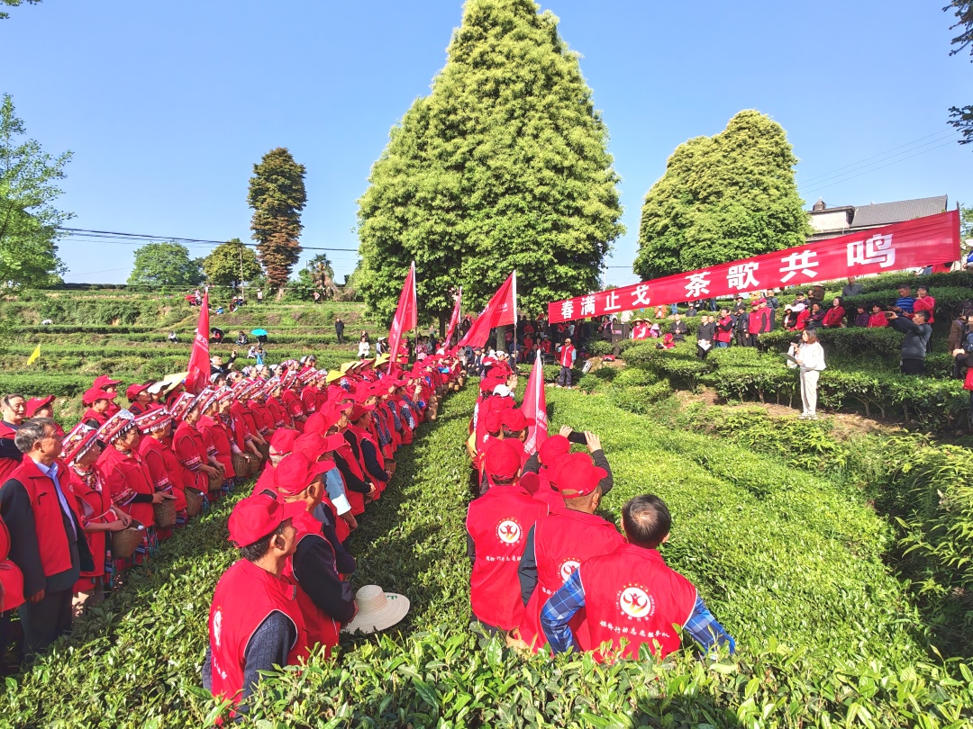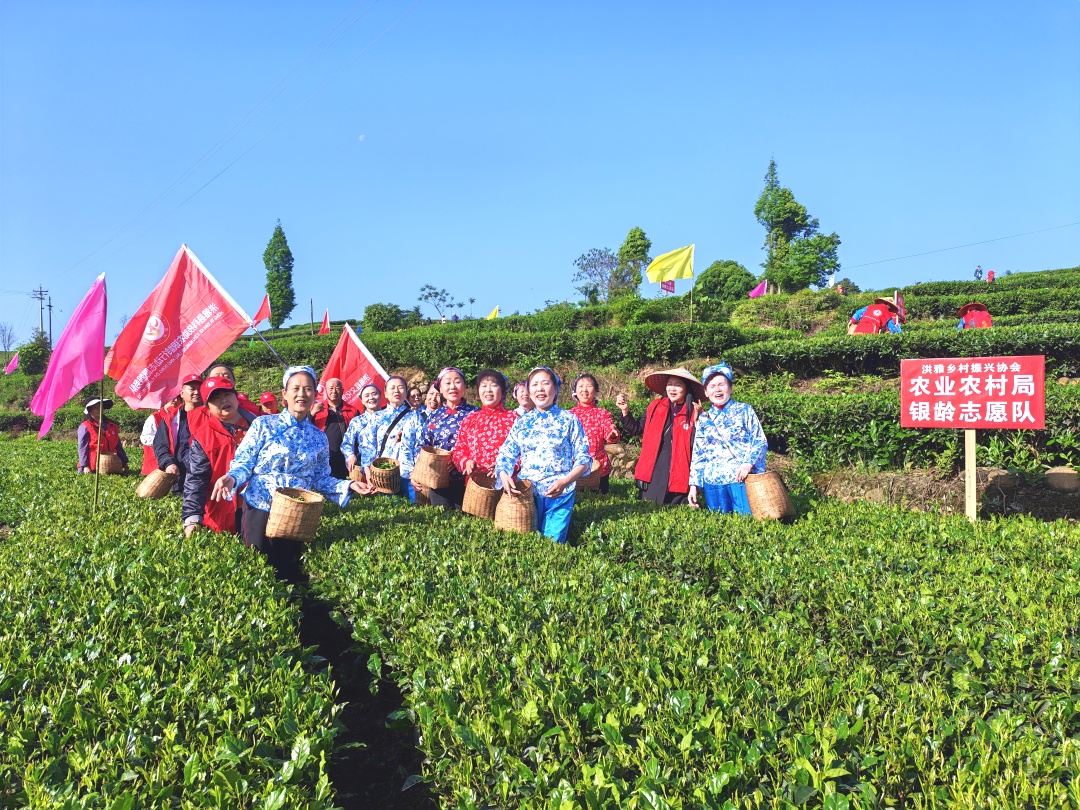 其间,各镇老协队伍以茶园为舞台,用质朴唱腔传递茶乡风情,《洪雅春山茶歌》《山歌好比春江水》《洪雅山歌》等曲目轮番唱响,歌声与笑声交织,采茶与歌唱同步,让助农行动既有温度,更具文化韵味。