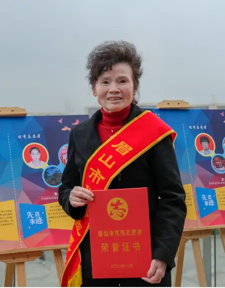 如今,鲜淑蓉带领的“夕阳红”团队有着一百七十余人,已成为洪雅志愿服务体系中一抹亮丽而独特的色彩。她证明了,善意与年龄无关,热情与岁月共长。从一个人坚定的身影,到一支队伍整齐的步伐;从一次偶然的帮扶,到一系列常态化的公益项目,她将退休后的时光,过成了比霞光更璀璨的公益进行时。